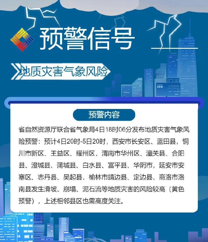 省自然資源廳聯合省氣象局4日18時06分發布地質災害氣象風險預警: