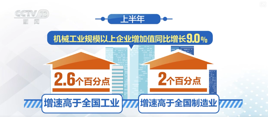 此外,上半年,機械工業規模以上企業增加值同比增長9.0%,增速高於全國工業和製造業2.6和2個百分點,為穩定經濟大盤、提振工業經濟發揮積極作用。