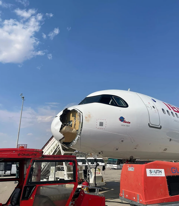 驚魂時刻!西班牙一航司全新客機起飛不久“機鼻被禿鷲撞碎”,182名乘客脱險