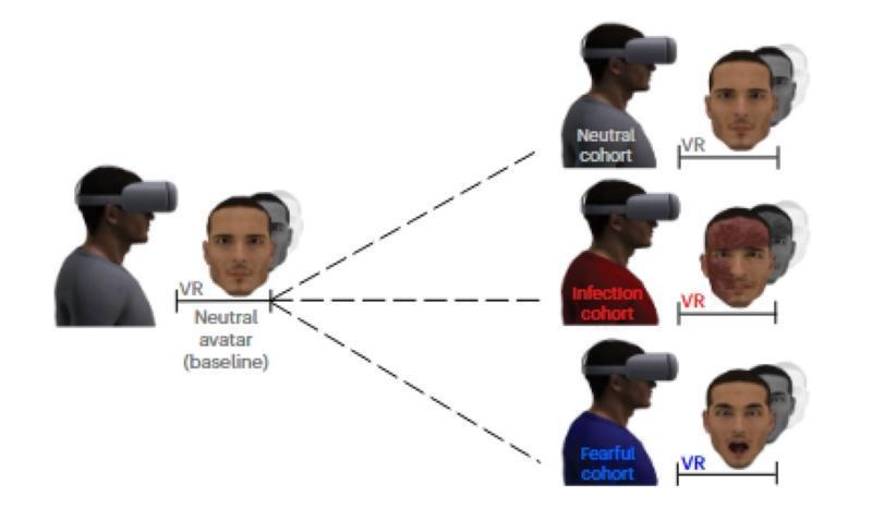瑞士腫瘤血液學轉化研究中心、拉維尼研究所與洛桑大學研究團隊,此次在虛擬現實環境下設計了一個實驗:讓248名健康年輕人面對虛擬的人類面孔,其中一些有可見的感染跡象,如皮疹或咳嗽,另一些則表現為中性或恐懼的表情。當看似患病的虛擬形象進入參與者近體空間(即身體周圍的近距離空間)時,參與者對觸摸的反應更強烈,這表明大腦近體空間系統處於高度戒備狀態。