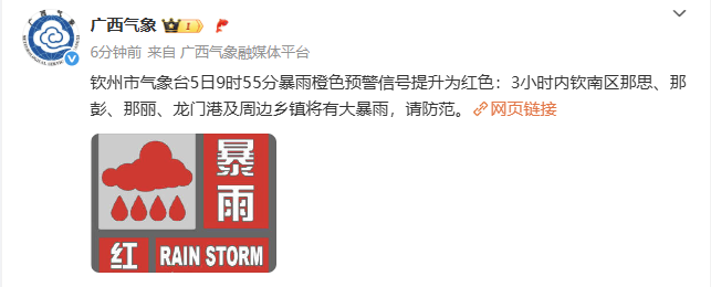 南寧、北海、欽州、防城港多地暴雨紅色預警!廣西啓動防汛四級應急響應