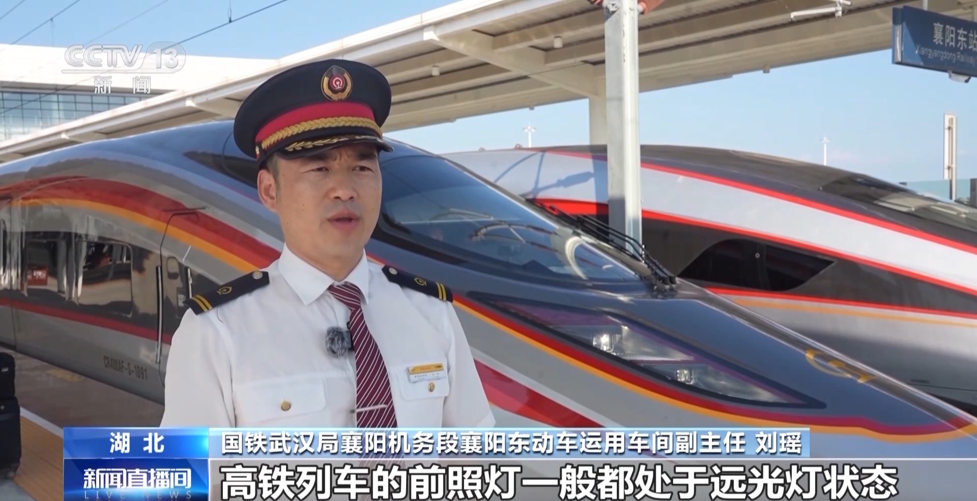 *國鐵武漢局襄陽機務段襄陽東動車運用車間副主任劉瑤:*高鐵列車的前照燈一般都處於遠光燈狀態,這也是為了能讓司機在最大視距範圍獲得線路信息。一旦發生緊急情況,就能為司機提供更多的判斷和操作時間,儘可能地降低危險和損失。