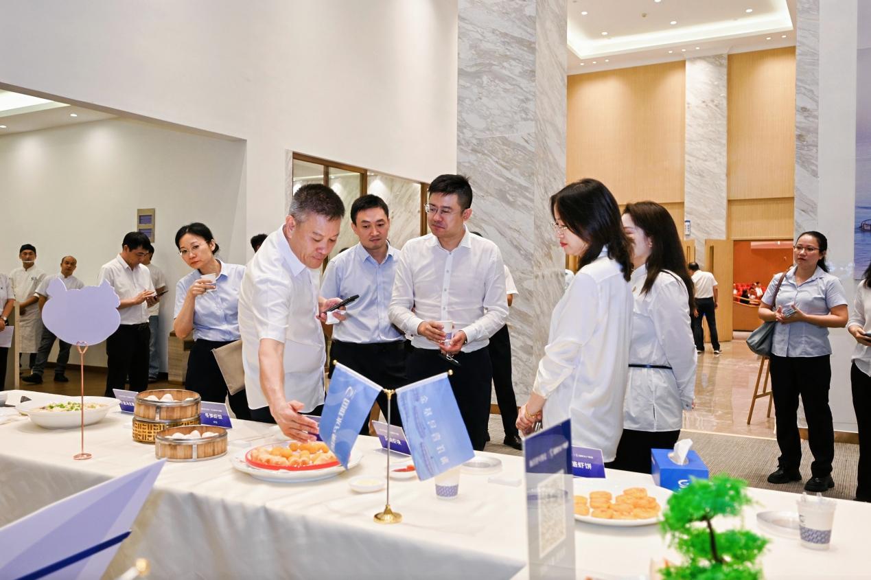 儀式啓幕前,一場精心籌備的品鑑盛宴讓嘉賓們領略了國聯“食”力。羅非魚漢堡層次分明,麻辣鮮香小龍蝦撩撥味蕾,蝦春捲金黃酥脆,水煮漢蝦鮮嫩多汁……數十道佳餚以精妙擺盤與馥郁香氣交織成美食畫卷,點燃現場品鑑熱潮,嘉賓們或細細諮詢烹飪秘訣,或迫不及待嚐鮮,讚譽聲與歡笑聲此起彼伏。