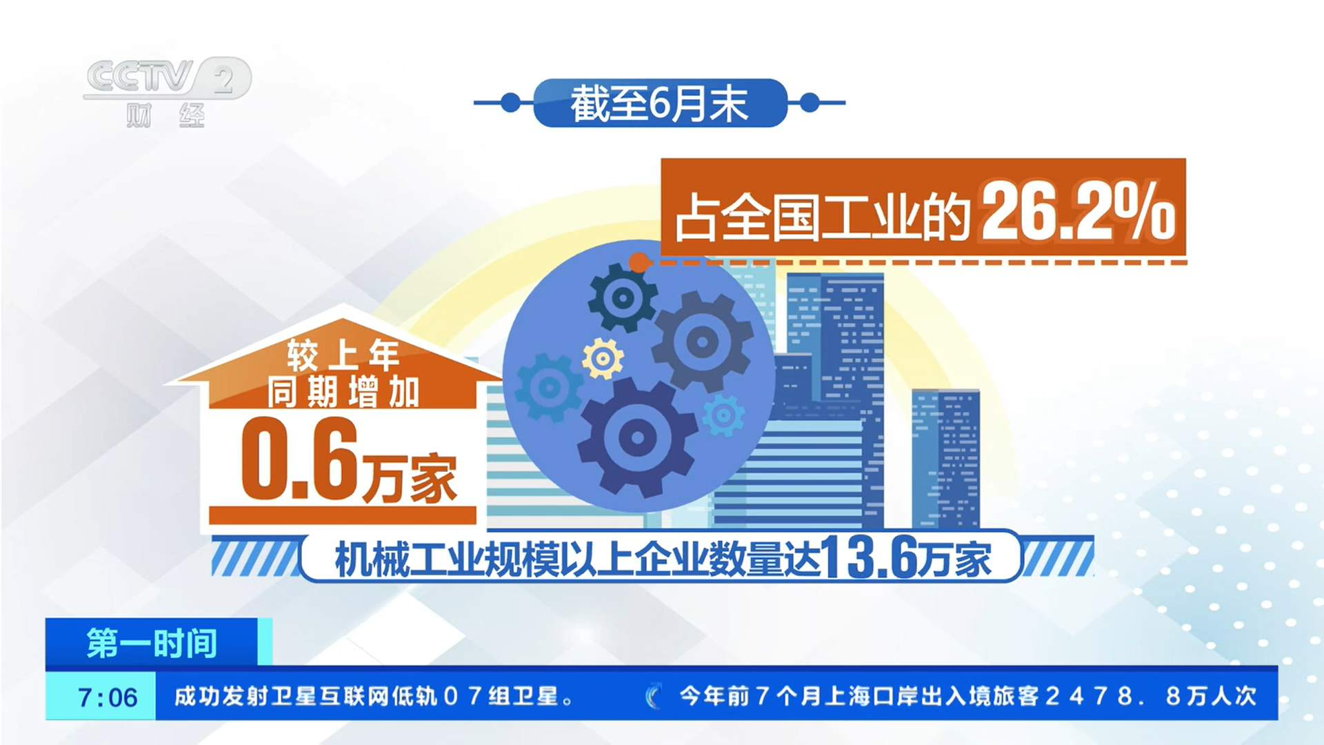 *央視網消息:*記者8月4日從中國機械工業聯合會獲悉,今年上半年,我國機械工業經濟運行穩中向好,產品產銷平穩增長,對外貿易展現韌性,創新活力加快釋放,新質生產力積極發展,產業升級和高質量發展成效顯著。