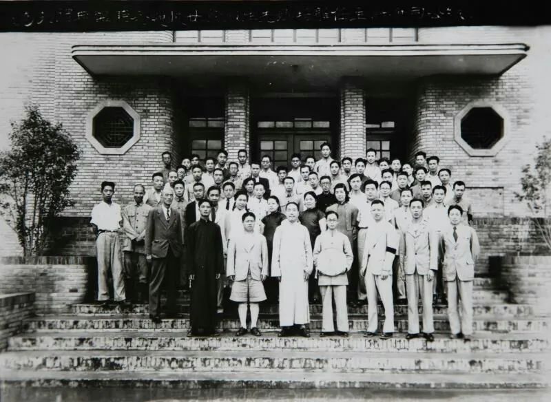 圖為李國偉(前左三)和夫人榮慕芸(二排右五)與廠高管人員在辦公樓前合影。長樂塬抗戰工業遺址管委會 供圖