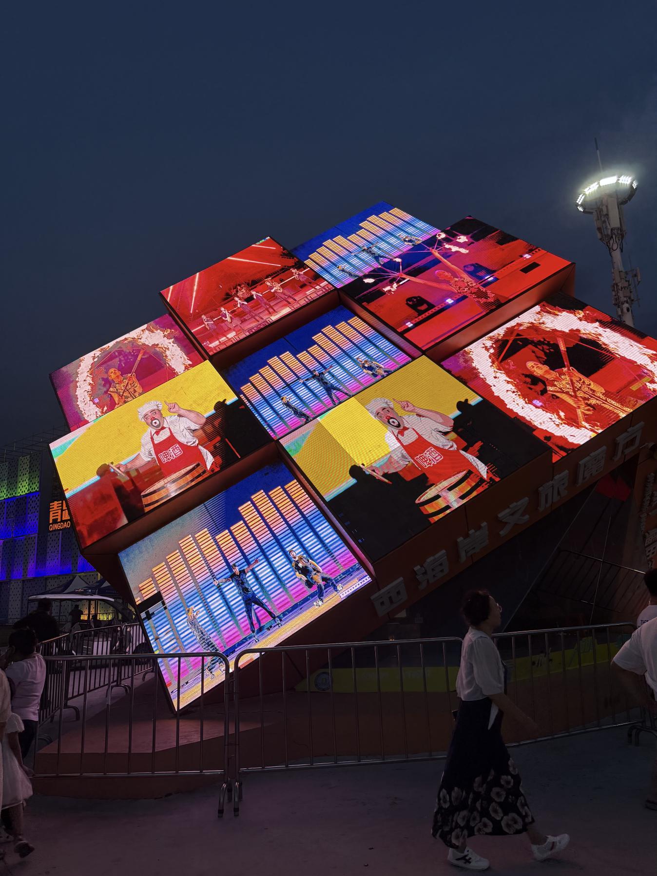 漫步星光大道,兩側主題彩燈流光溢彩,彷彿踏入如夢如幻的光影世界;青西金啤精釀體驗館外牆化身3D Mapping光影秀“畫布”,成就一幅幅動態藝術作品;千架無人機以天空為幕,以城市為背景,在夜空中作畫……