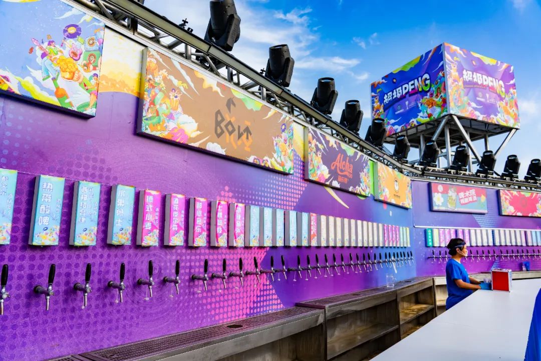 “超級 PENG”酒牆,堪稱一座精釀啤酒的寶庫。這裏匯聚了來自世界各地的300款精品啤酒,每一款都有着獨特的風味和故事,滿足不同口味需求。