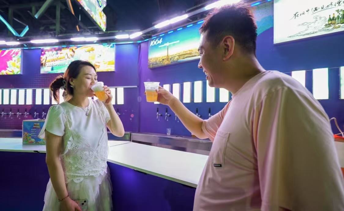 來“超級PENG”酒牆,碰出歡樂,碰撞熱愛,在金沙灘啤酒城創造夏日難忘回憶!(來源:青島市西海岸新區宣傳部)