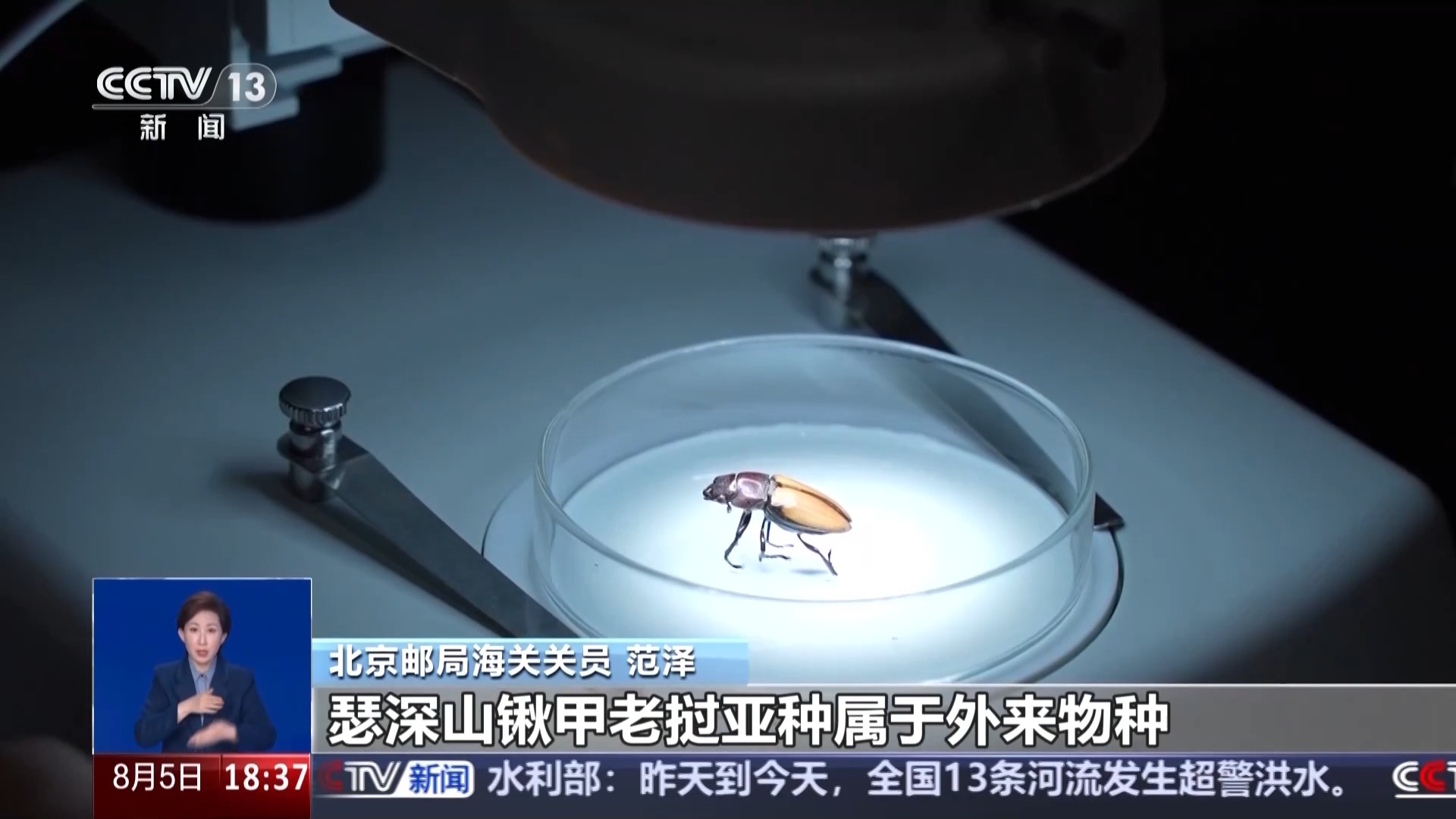 *北京郵局海關關員 範澤:*瑟深山鍬甲老撾亞種屬於外來物種,在我國沒有自然分佈,它的幼蟲以腐敗的木屑為食,成蟲以吸食樹汁或水果為食。此類外來物種,一旦(被)棄養或者逃逸,如果它們與本地近緣種雜交,會影響基因多樣性。