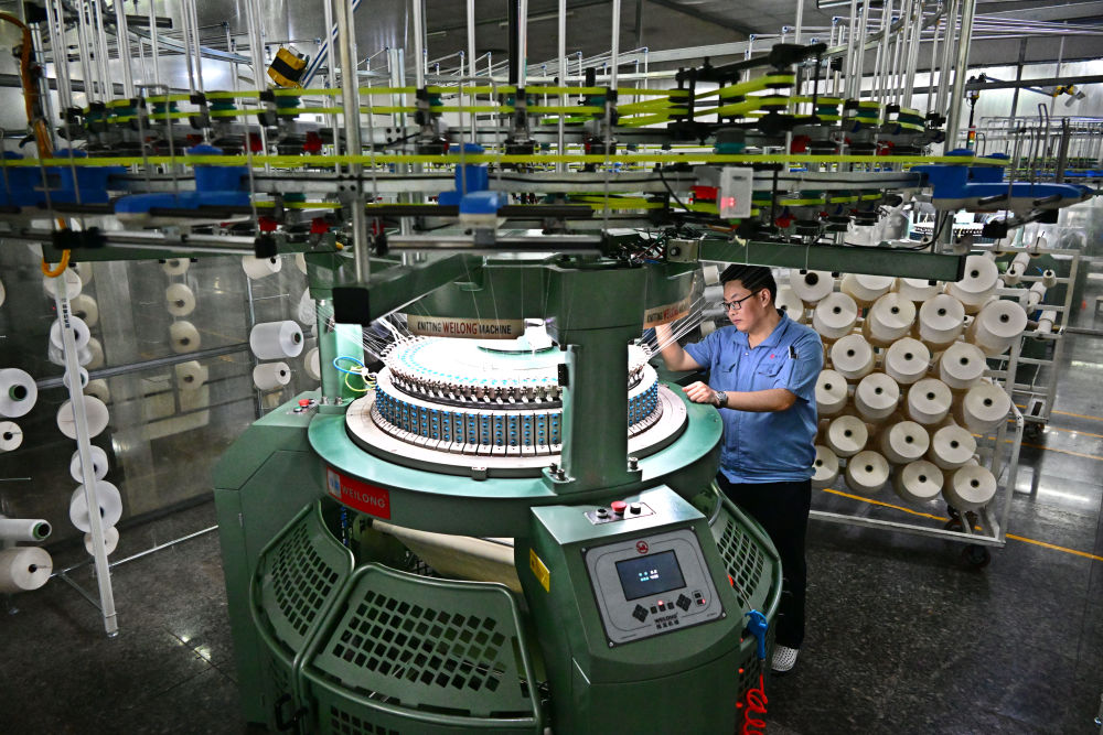 2025年3月25日,山東省青島市即墨區一家智慧紡紗企業的技術人員在維護生產高檔布料的自動化圓機。近年來,即墨區引導民營企業加大新技術、新裝備、新工藝的研發和投入,加快信息化和工業化融合升級改造。同時,通過對接企業用工需求、實施新技能培訓等舉措,促進紡織服裝產業可持續高質量發展,也讓羣眾在家門口實現穩定就業和增收。