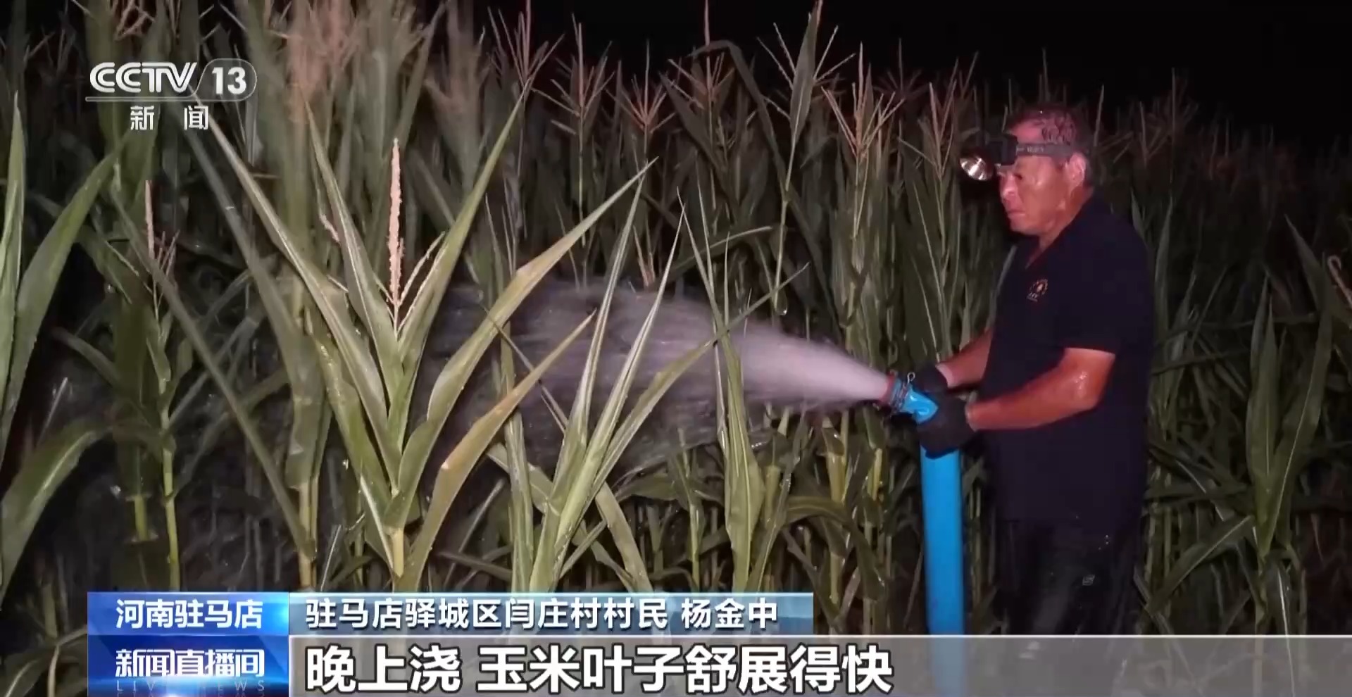 *駐馬店驛城區閆莊村村民 楊金中:*晚上澆,玉米葉子舒展得快,玉米棒立馬就出來了。白天澆温度高,蒸發得快,玉米過來勁兒慢。
