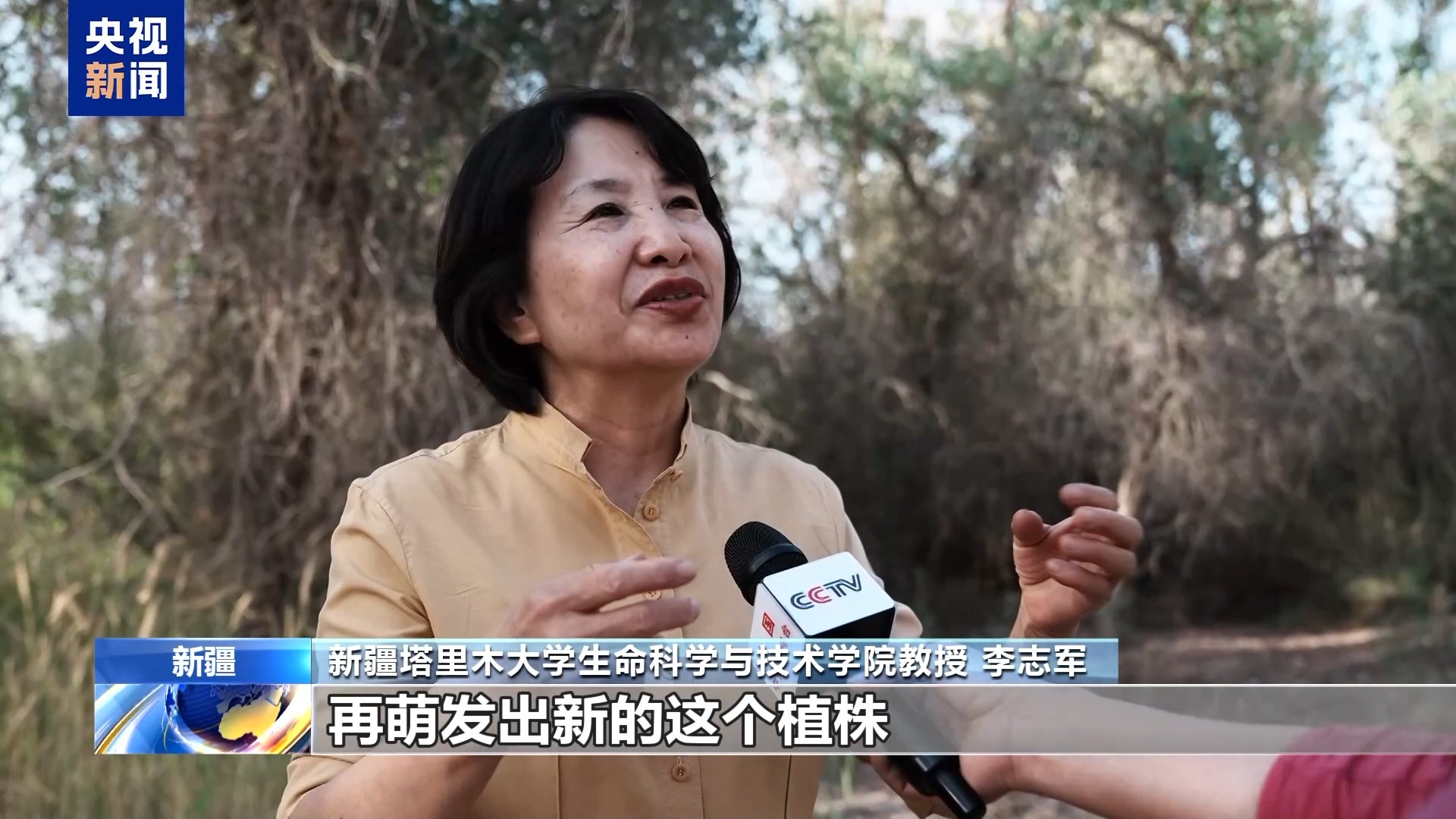 新疆塔里木大學生命科學與技術學院教授李志軍介紹,她們研發了一套技術就像給小胡楊打了“成長加速包”,將育苗週期從2至3年縮短至4個月,不僅提高種子發芽率和生長速率,還能提高移栽成活率,大大降低育苗時間成本和經濟成本。