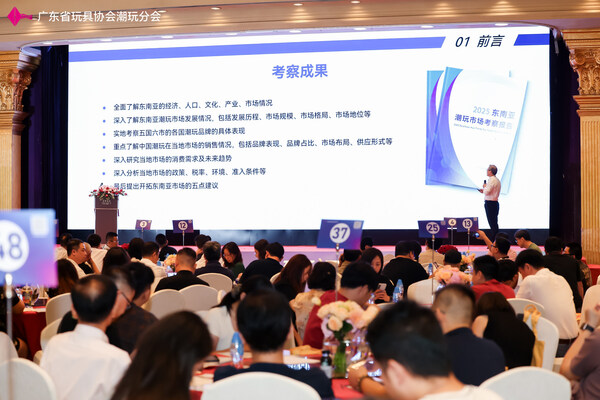廣東省玩具協會會長兼潮玩分會會長陳黃漫在大會上權威發佈《2025東南亞潮玩市場考察報告》。這份報告凝聚了潮玩分會專業團隊歷時20天的深度調研成果。調研組跨越越南河內與胡志明市、泰國曼谷、馬來西亞吉隆坡、新加坡及印尼雅加達5國6城,實地走訪當地核心潮玩賣場,與本土行業協會、領軍企業展開戰略對話,全方位解碼東南亞潮玩市場的產業生態、消費趨勢與未來機遇。