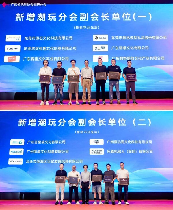 會上,潮玩分會秘書長朱成相宣讀了新增11家副會長單位、40家理事單位名單,並舉行了授牌儀式。