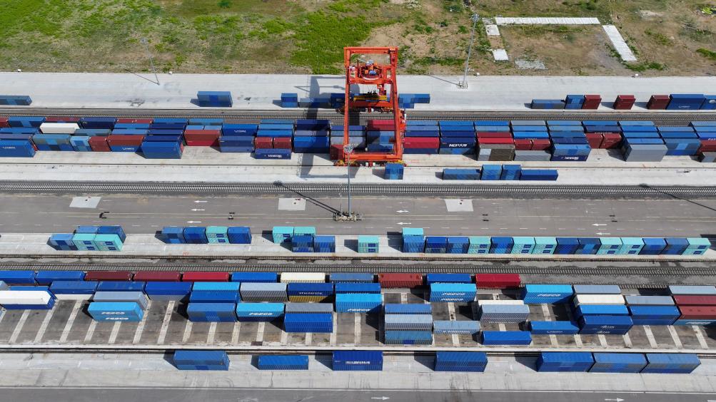口岸站整齊擺放的集裝箱。(中國鐵路哈爾濱局集團有限公司供圖)