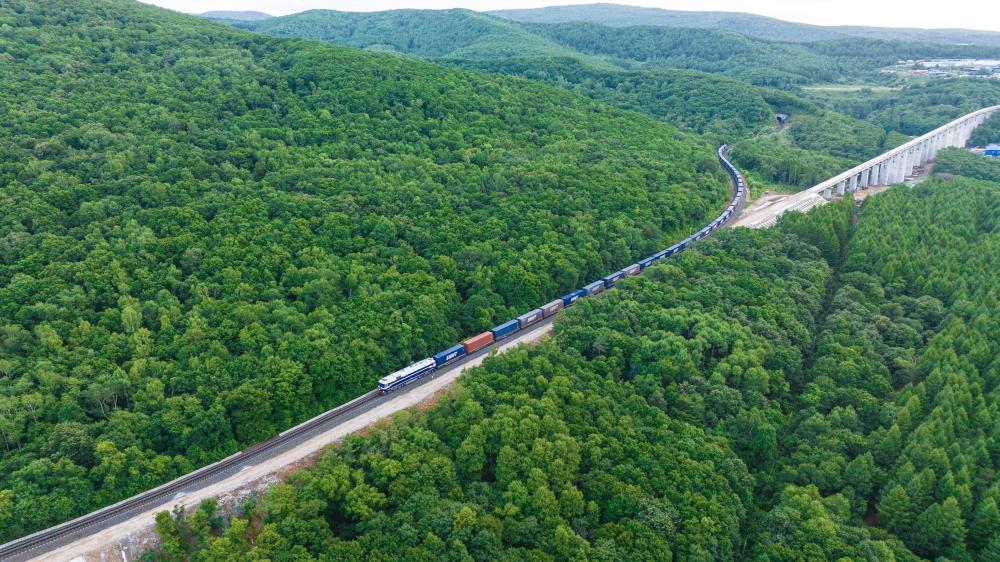 穿越在林海間的中歐班列。(中國鐵路哈爾濱局集團有限公司供圖)