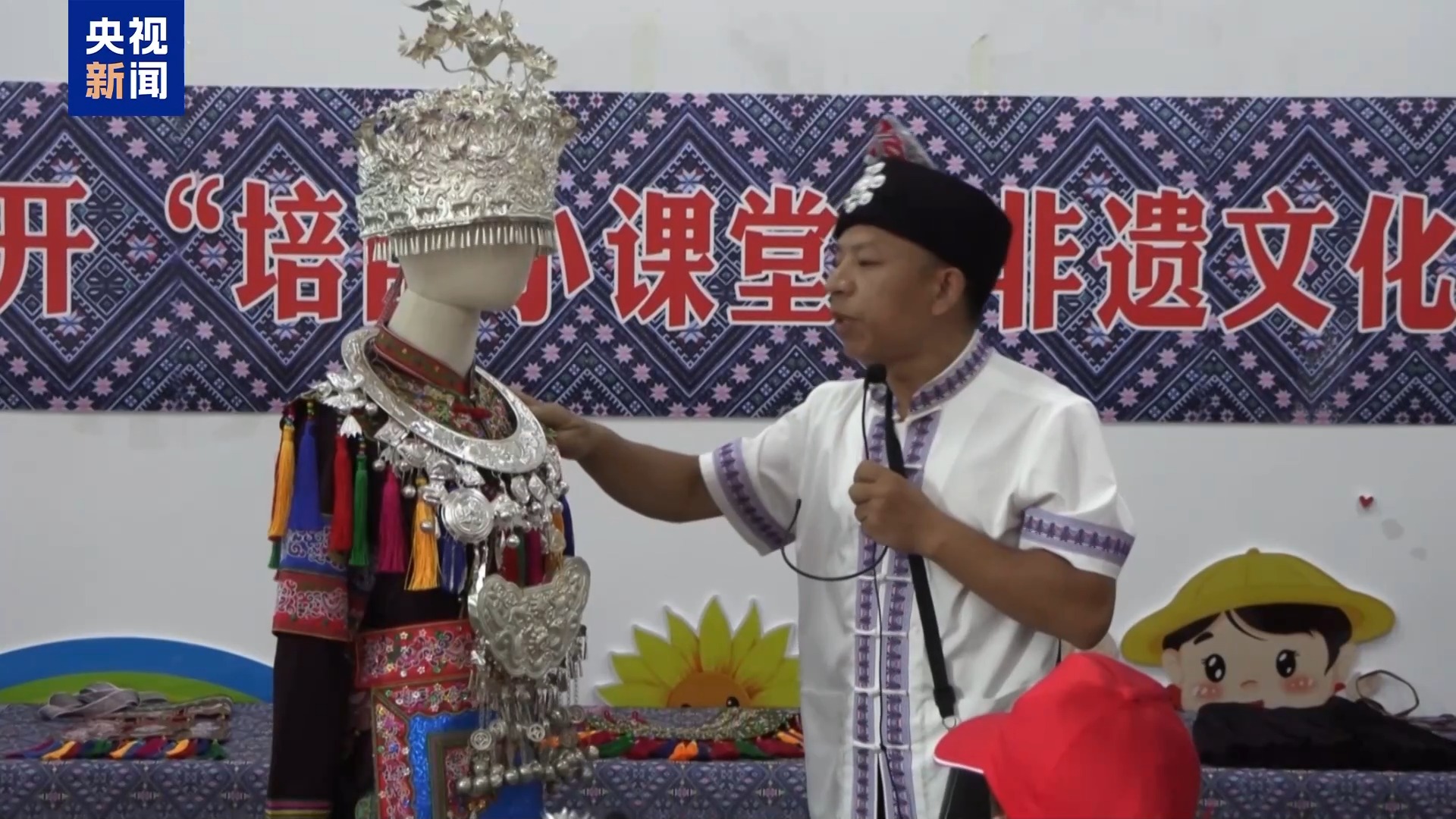 暑假期間,湖南懷化市通道侗族自治縣通過開設公益課堂,將本地非遺項目帶到孩子們身邊。在公益課上侗族服飾傳承人向學生們系統介紹了侗族服飾文化,闡釋不同紋樣圖案的象徵意義。學生們不僅直觀感受到侗族精湛的紡織工藝,更深刻理解了服飾中藴含的民族文化。