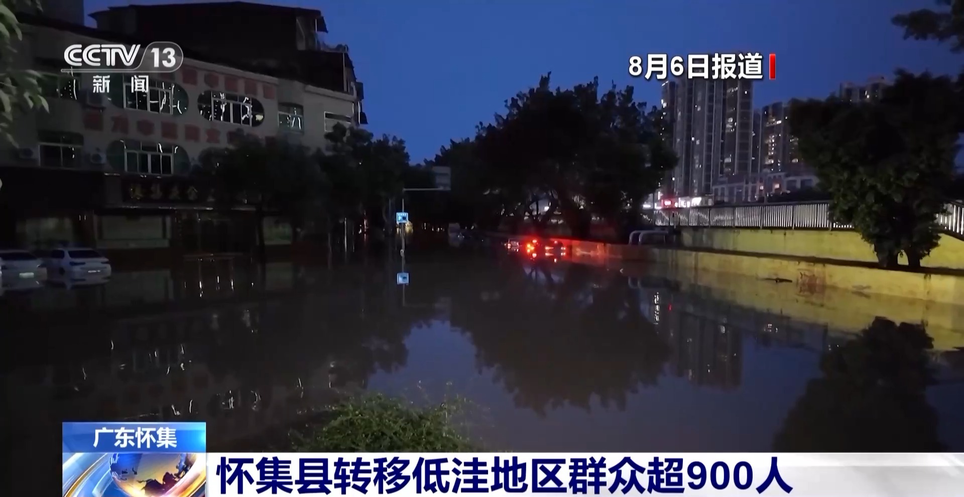 在城區的一片居民樓,整個居民樓處在黑燈的狀態。對於一些低窪地區的羣眾,當地已經進行了轉移,目前懷集縣轉移的低窪地區受災羣眾達到了914人。