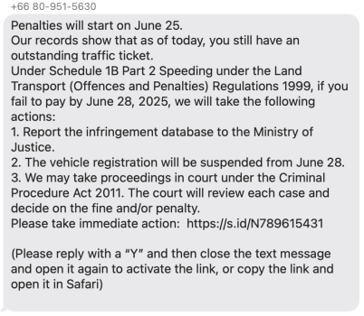 詐騙分子常偽造與官方繳款界面高度相似的虛假界面,誘導受害人轉賬。據新西蘭官方明確信息,新西蘭交通局發送短信僅使用號碼3651,且該號碼發送的短信絕不會附加網址鏈接。如收到涉及交通相關業務的短信,務必通過新西蘭交通局官方渠道核實,切勿向陌生賬户轉賬。