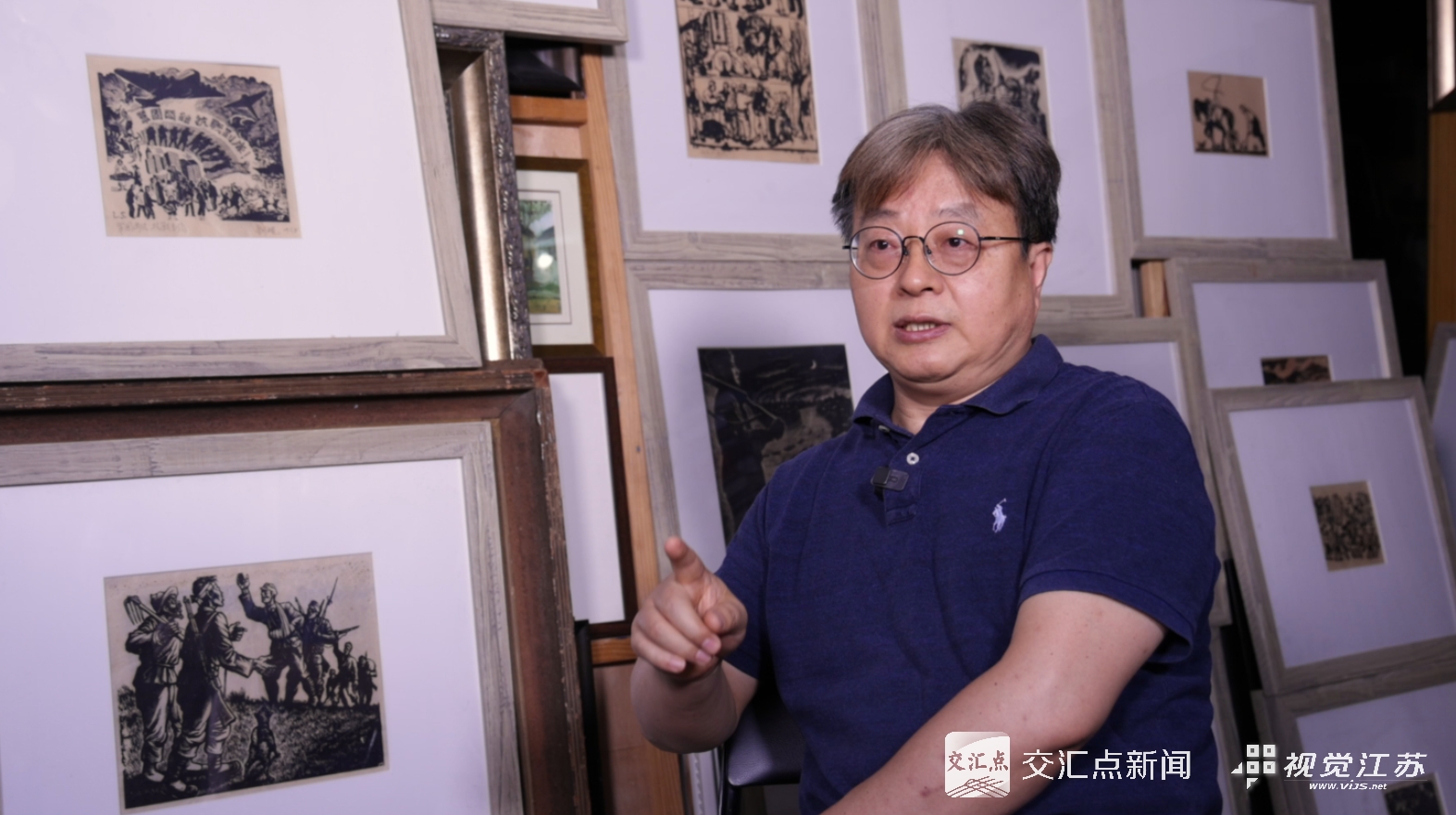 在南京藝術學院教師袁維忠家中,記者看到他收藏的大量抗戰時期的木刻作品。袁維忠介紹,版畫家羣體在抗戰洪流中兵分兩路:古元、力羣、華君武等奔赴延安,李樺等堅守國統區,分別創作了《減租會》《飲》《榜樣》和《烽煙集》等作品。