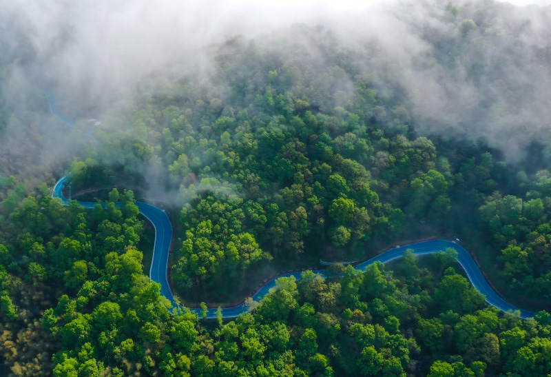 空中俯瞰東海雲廊,宛如一條藍色玉帶盤繞山間。定海區委宣傳部供圖