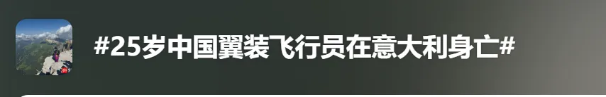 近日,#25歲中國翼裝飛行員在意大利身亡#話題引發關注。
