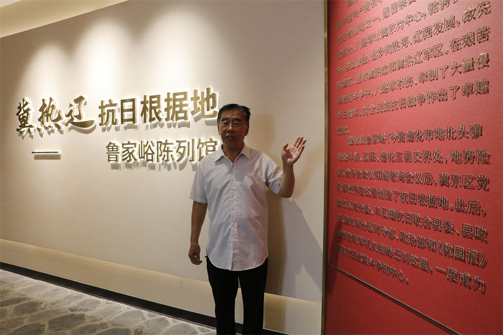 8月3日,在遵化魯家峪村的魯家峪陳列館,李自亞講述當年烽火歲月。記者 師源攝