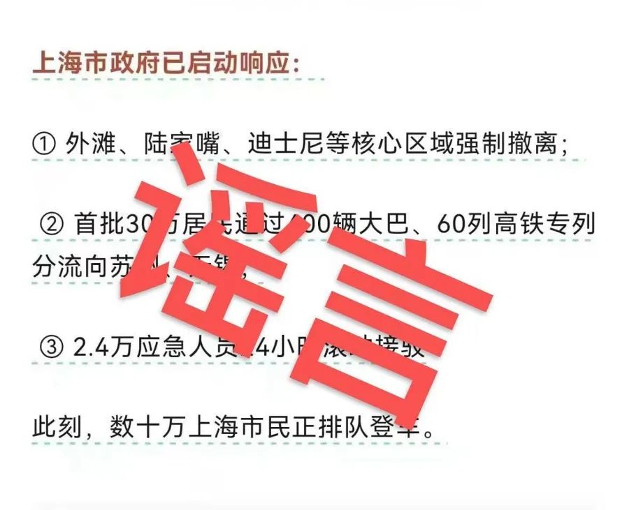 7月30日上午,國家自然資源部海嘯預警中心發佈海嘯預警信息,因俄羅斯勘察加東岸遠海發生8.7級地震,預計上海舟山等地區沿海將受到海嘯波影響。當日中午,有微信公眾號發佈信息稱,受海嘯影響,“上海30萬居民通過大巴和高鐵分流至蘇州、無錫” “數十萬上海市民正排隊登車”……引發公眾議論和恐慌。