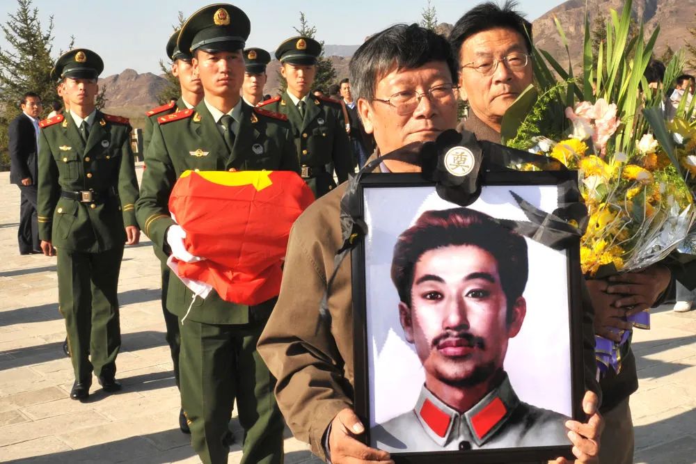 2008年10月25日,趙尚志顱骨安葬儀式在遼寧朝陽舉行。新華社發