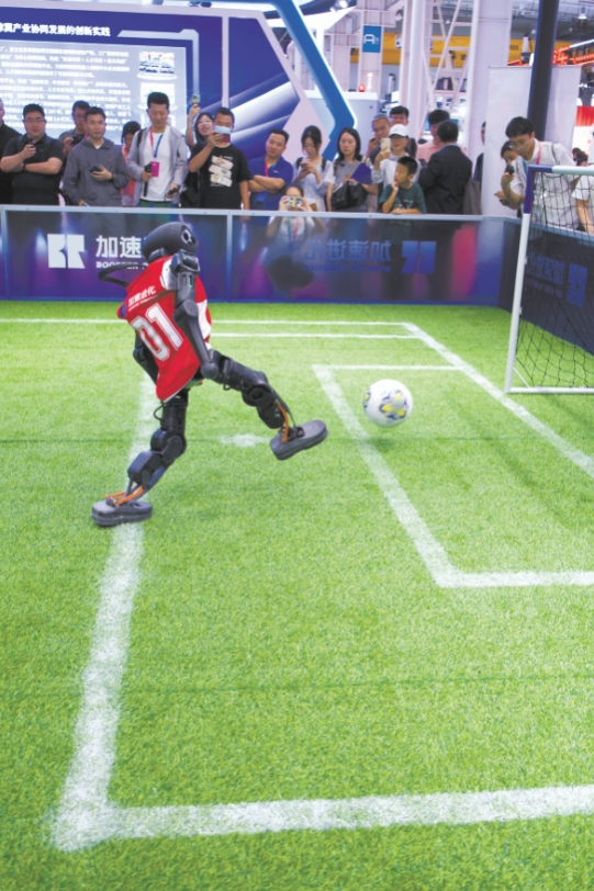 宇樹科技的G1格鬥機器人與全新發布的R1人形機器人在本屆大會上聯袂登場,G1格鬥機器人依靠先進的動態平衡算法,迅猛的出拳、凌厲的高踢腿等高難度動作一氣呵成,展現出接近人類的運動協調性。另一家機器人企業“加速進化”帶來的是剛在2025 RoboCup 巴西機器人足球世界盃上奪冠的加速T1、K1兩款機器人,該公司還搭建了一個小型足球場,讓參觀者直觀感受機器人競技的獨特魅力。