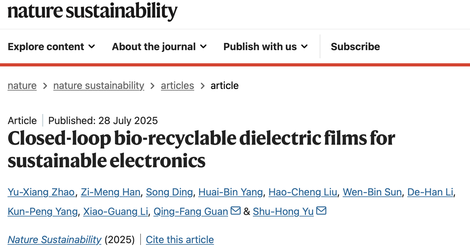 【環球網科技綜合報道】8月9日消息,據《自然-可持續性》(Nature Sustainability)報道,中國科學院院士、中國科學技術大學教授俞書宏團隊開發出可閉環生物回收的纖維素基介電薄膜,能夠提高電子器件的循環利用率,從而減少電子廢棄物。