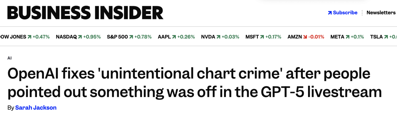 【環球網科技綜合報道】8月9日消息,據businessinsider報道稱,OpenAI 於週四正式發佈最新大模型 GPT-5 的直播演示中,多張對比圖表因繪製錯誤引發熱議。該公司首席執行官 Sam Altman 今日在社交平台與 Reddit AMA 中承認失誤,稱其為“大型圖表失誤”,並已在官網公告中完成勘誤。
