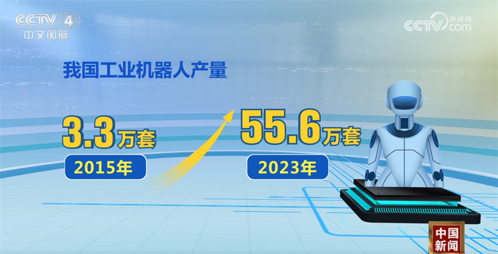 我國工業機器人產量由2015年的3.3萬套增長至2023年的55.6萬套,服務機器人產量為1051.9萬套,同比增長34.3%。在技術創新方面,截至2024年7月,中國持有的機器人相關有效專利超過19萬項,佔全球總量的約三分之二。