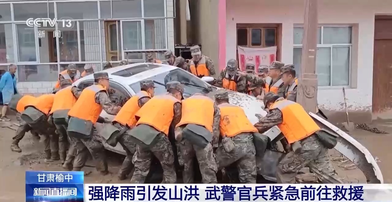 榆中縣山洪災情發生後,武警甘肅總隊數百名官兵迅速響應,緊急奔赴受災一線,展開救援行動。