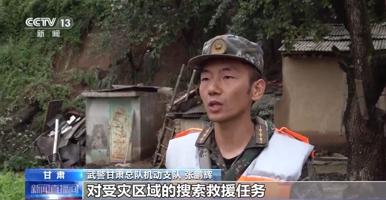*武警甘肅總隊機動支隊 張鵬輝:*我分隊此次擔負對受災區域的搜索救援任務,採取分區劃片的方式,每兩至三人劃分為一個小組,利用繩索牽引,對河道周邊房屋展開搜救。