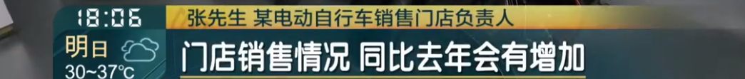 而在附近的一家電動自行車銷售門店,記者也瞭解到,這家門店近期的銷量較往年同期上漲約25%。