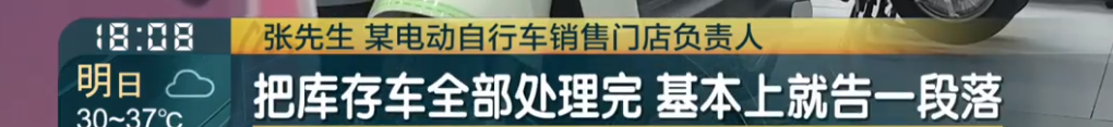 某電動自行車銷售門店負責人 張先生: 9月1號之後,店家有多少庫存車,庫存車賣完到12月1號之前,把庫存車全部處理完,基本上就告一段落,現在部分廠家《新國標》已經開始執行(生產了)。