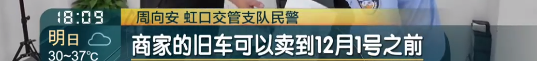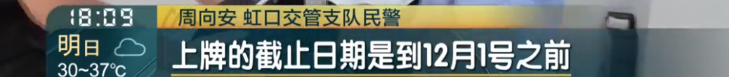 虹口交管支隊民警 周向安:我們交管支隊這裏是對原本的舊車,上牌的截止日期是到12月1號之前,商家的舊車可以賣到12月1號之前,所以不用很恐慌地扎堆來進行上牌。