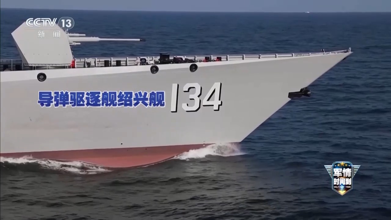 紹興艦,舷號134,是我國自主設計建造的052D改進型導彈驅逐艦,2022年3月入列,滿載排水量7000餘噸。具有較強的戰場探測感知、電子水聲對抗及綜合攻防能力,主要擔負編隊區域防空、對海突擊等任務。此次“海上聯合-2025”聯合演習期間,面對一些國家的飛機和艦船不斷出現在周邊,紹興艦從容淡定地向外發出中國聲音。