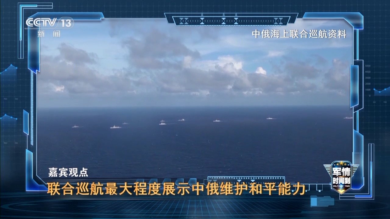 *軍事專家 魏東旭:*演習之後進行的海上巡航,這也是雙方兵力聯合運用一個非常重要的內容。首先,太平洋還不太平,在相關的區域內還潛藏着一些危機。在這樣的一種狀態下,中俄兩國海軍進行聯合海上巡航,最大程度地展示了自身在廣闊區域內維護和平、維護穩定的一種能力,可以針對這種複雜的因素進行有效地應對。除此之外,在聯合巡航的過程當中,巡航足跡所達的區域,也是維護和平能力所觸達的區域。