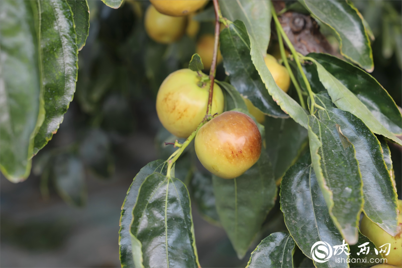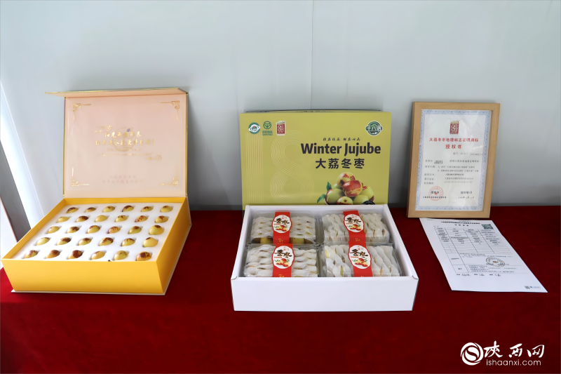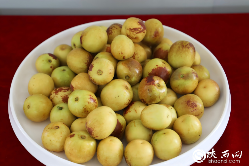 周愛英介紹説:“大荔冬棗具有四大特徵,果個大,果實近圓形,平均單果重20克。果面平整光潔,果皮薄而酥脆,完熟期呈淺黃片狀赭紅色。肉細嫩,果肉乳白色,口感細嫩酥脆。味香甜。品質優勢明顯。”