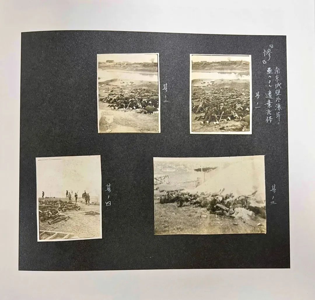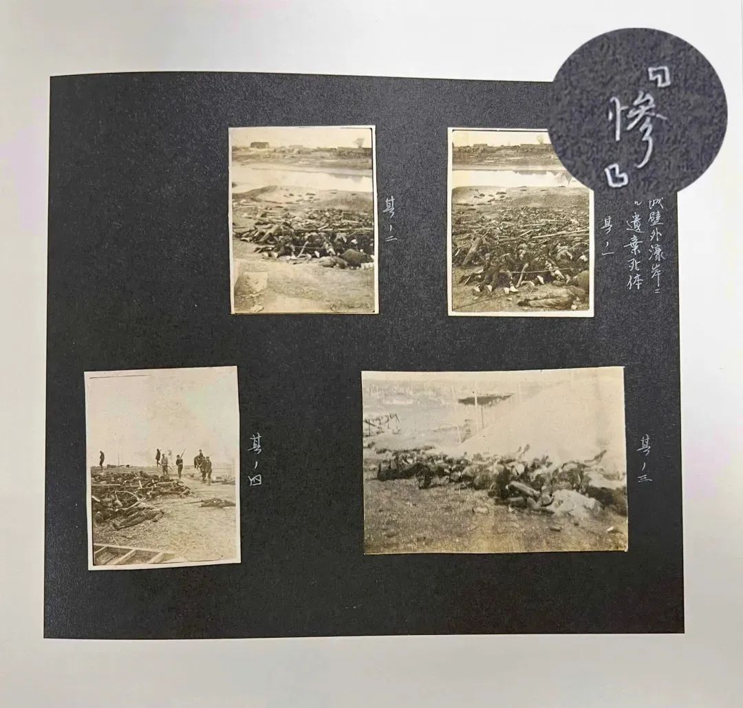 這是日軍航空兵伊藤兼男的照片集,其中貼有他1937年7月13日參加侵華戰爭到1938年1月7日到達南京,並在南京生活80天所見所聞的照片,包括許多記錄日軍在南京暴行的照片。每張照片都有伊藤本人手寫的日文説明,其中一頁有四張照片,皆是日軍屠殺後,在城牆外、護城河邊被遺棄的累累屍體的照片,在這頁的右上角,他還寫下了一個“慘”字。