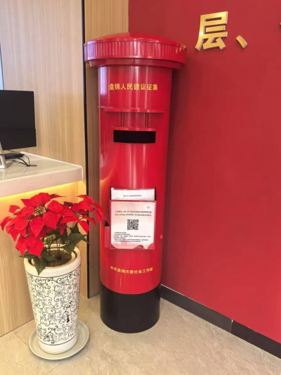 盤錦市興隆台街道設置的人民建議徵集紅色郵筒。盤錦市委社會工作部供圖
