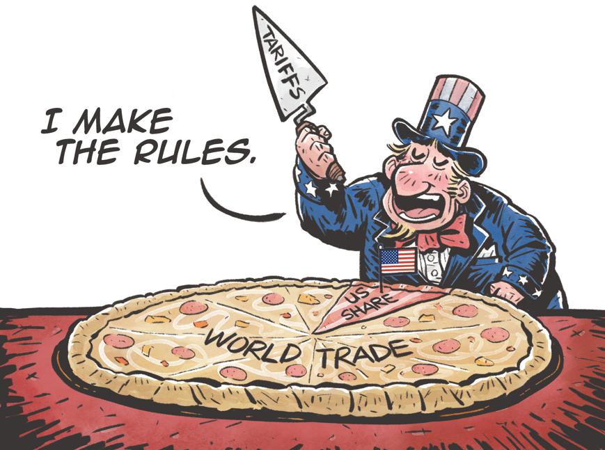 文章指出,歷史上曾有過這樣的時刻:隨着國際關係中的公平表象消退,粗暴的權力博弈捲土重來。這種情況同樣適用於當代全球貿易體系。過去幾十年裏,美國一直宣稱,這套貿易體系立足於開放的市場、以規則為基礎的秩序以及互惠互利,構成了良性循環。