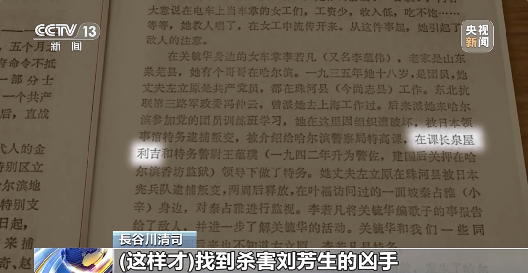 越是瞭解劉芳生,長谷川就越想知道殺害他的兇手。劉書卿的回憶錄裏提到,當時負責抓捕行動的偽滿哈爾濱警察廳特高課課長,姓名不詳。長谷川在日本尋找歷史真相的過程中,偶然看到中國作家關沫南先生的著作《憶哈爾濱左翼文學事件》中有相關內容,“百分之九十確信,殺害劉芳生的就是特高課課長泉屋利吉。”