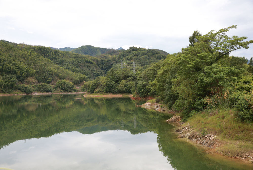 這是陳漢鄉的釣魚台水庫,水庫中央樹林處為“陳漢溝會師”舊址(7月22日攝)。新華社記者 肖磊濤 攝