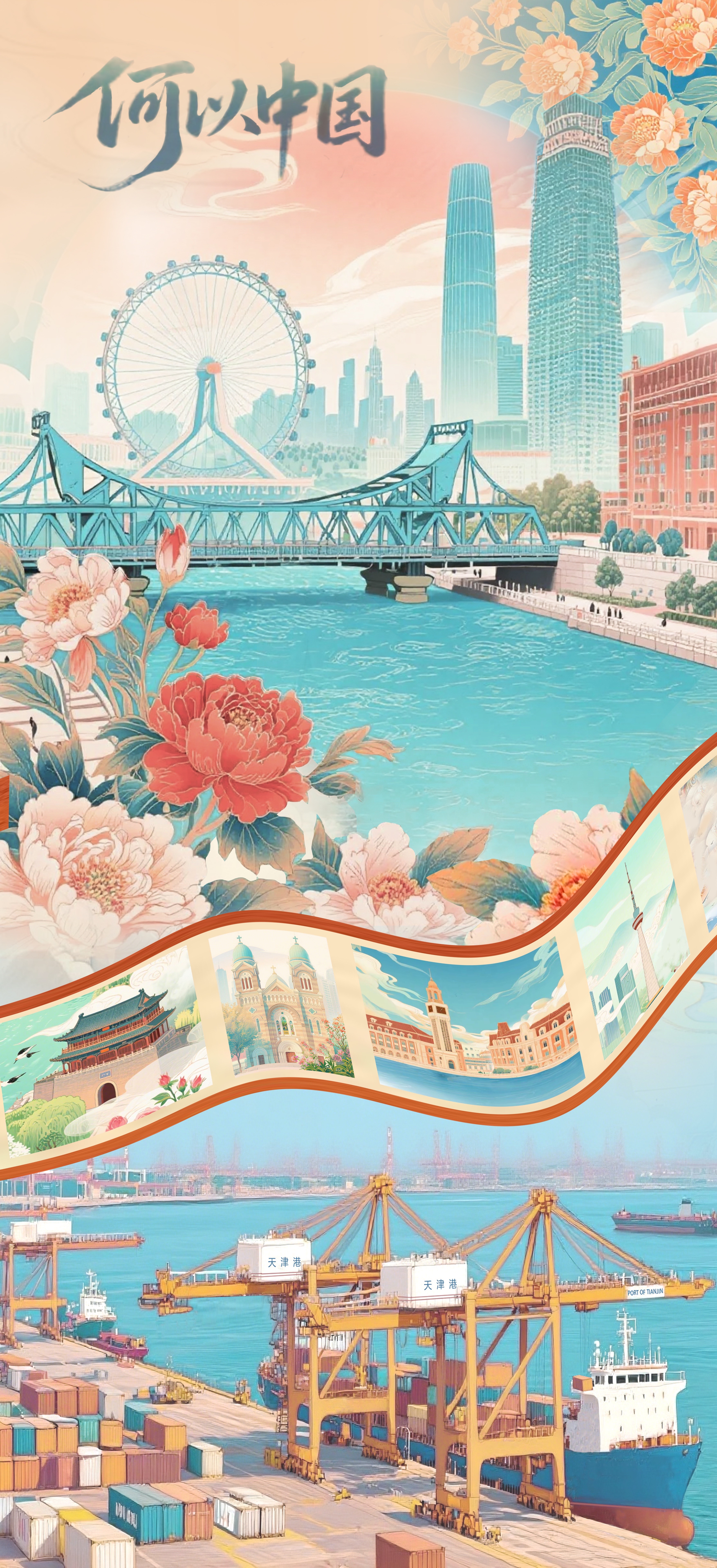 面向世界,天津以開放之姿破浪前行。天津港挽五洲、連四海,讓貨物在此流轉不息,更讓情誼在此脈脈相傳。這裏不僅是物流交匯的樞紐,更是文明互鑑的橋樑——遠方航船載來異域風物,亦攜走天津的匠心巧思。這種與世界的和諧相連,是平等對話的坦誠,是共贏攜手的熱忱。“四海之內皆兄弟”的古訓在此生動演繹,於商貿往來中織就一張温暖的共生之網。