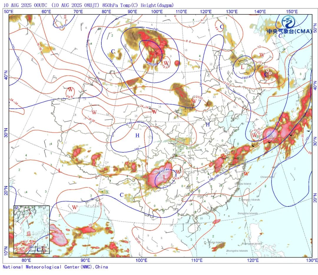 13日開始,副熱帶高壓將重新加強,且高壓中心區域會逐漸靠近杭州,屆時杭州的雷陣雨範圍將縮小,天氣將恢復到晴熱高温狀態。