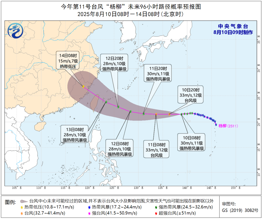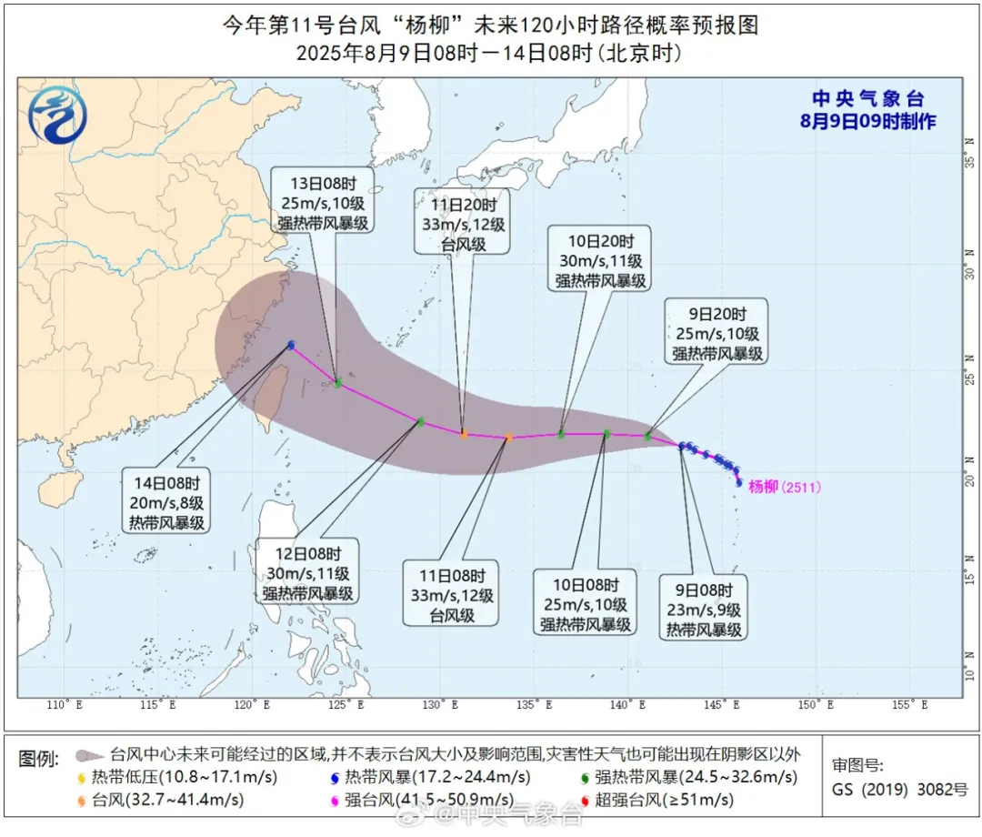 預計,“楊柳”將以每小時20-25公里的速度向偏西方向移動,強度有所增強,並向台灣以東洋麪靠近。
