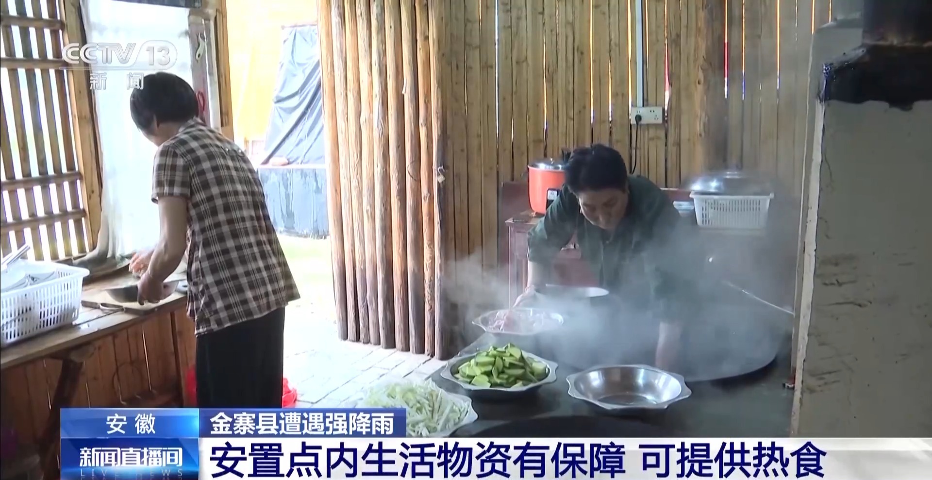昨天晚上在降雨來臨前,當地對地質災害點及安全隱患區的92户156名羣眾進行了轉移。臨時安置點內的生活物資,像飲用水、方便麪等應急食品,還有被褥、手電筒等生活必需品,都是有準備的。為保障羣眾吃得舒心,村裏特意採購了新鮮的蔬菜、肉類等食材,由專人負責烹飪,為轉移安置羣眾提供熱乎可口的一日三餐。